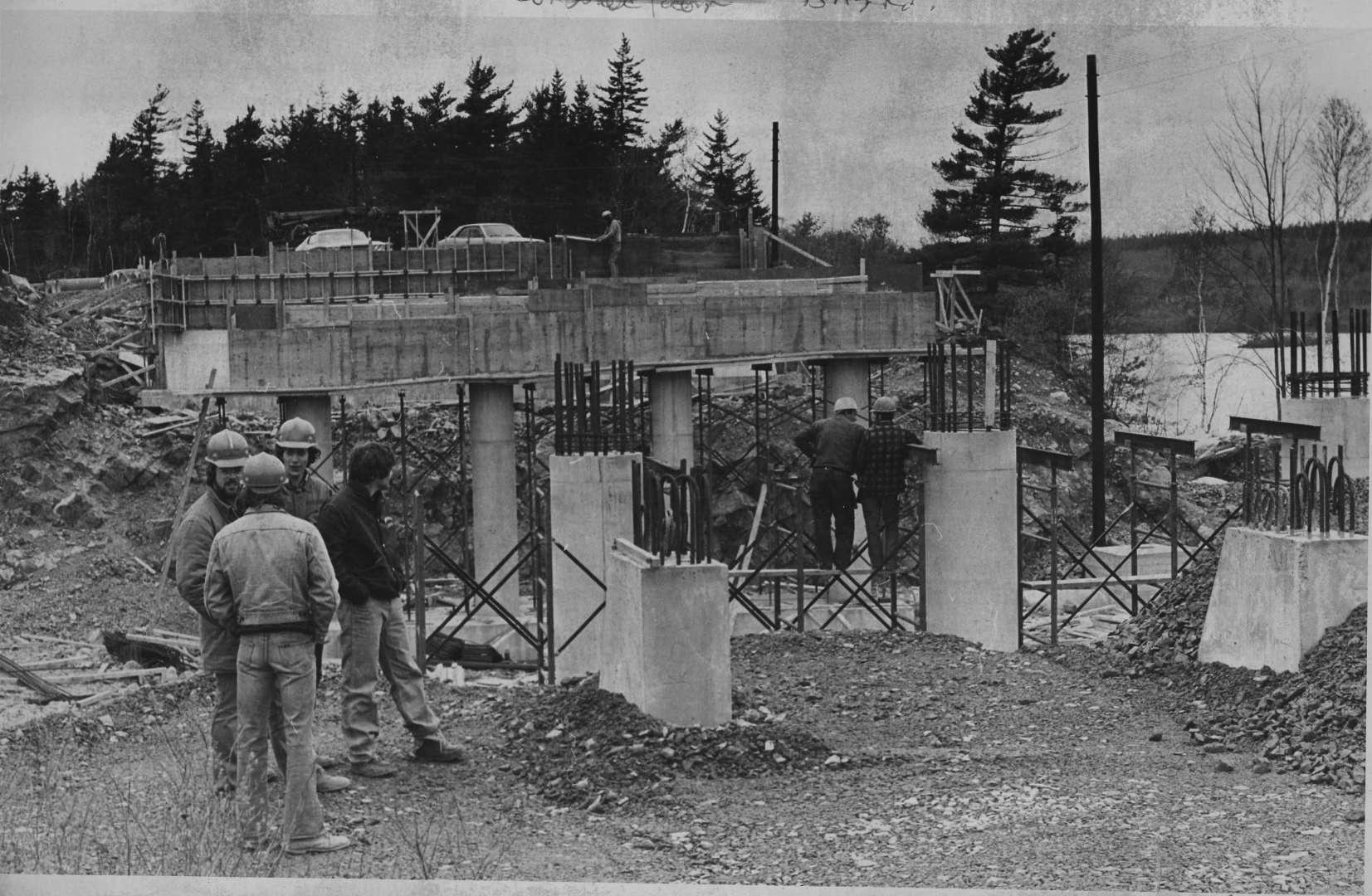 Picture of the construction pillars being used to support the Bay Road overpass. Part of the construction connecting Fairview to Old Sambro Road. Cutline: PILLARS COMPLETED - Pillars have been completed on the Bay Road overpass of Northwest Arm Drive. The deck of the massive structure is expected to be completed within one month.